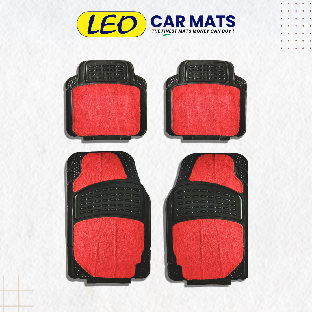 Leo Serrated Design with red carpet Car Mats (Red) Set of 4 for Hyundai Elite i20